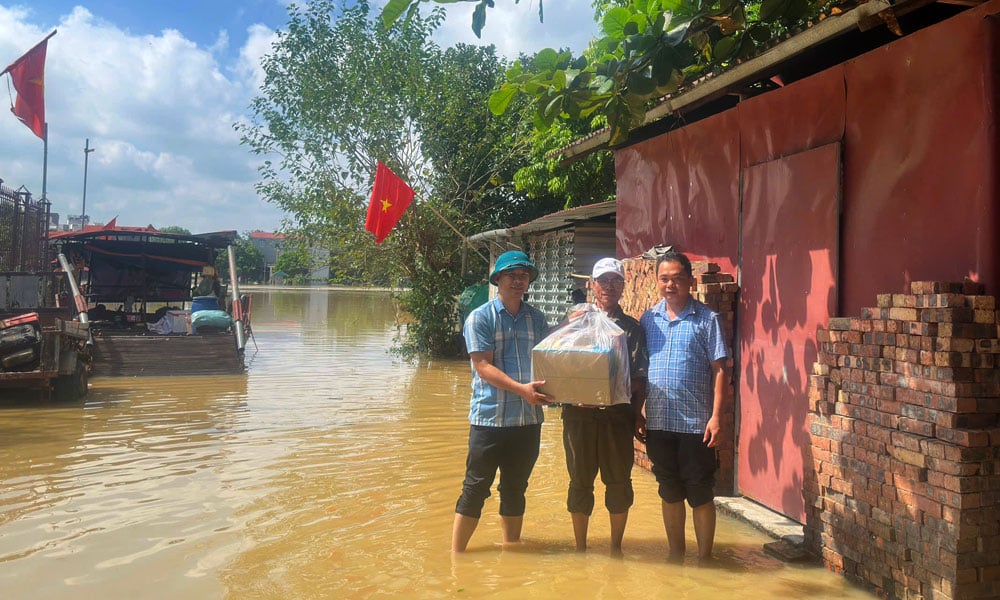 Nước sông Cầu dâng cao ảnh hưởng đến đời sống của gần 600 hộ dân khu vực ven đê tả Cầu. Xã Xuân Cẩm đã thăm, tặng quà cho các gia đình khó khăn bị thiệt hại. Ảnh: Phương Nhung. |