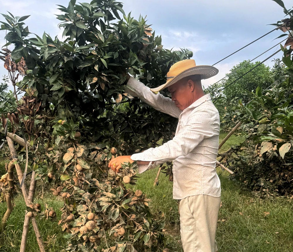 Người dân phường Phượng Sơn chăm sóc vườn cây cam sau mưa lũ