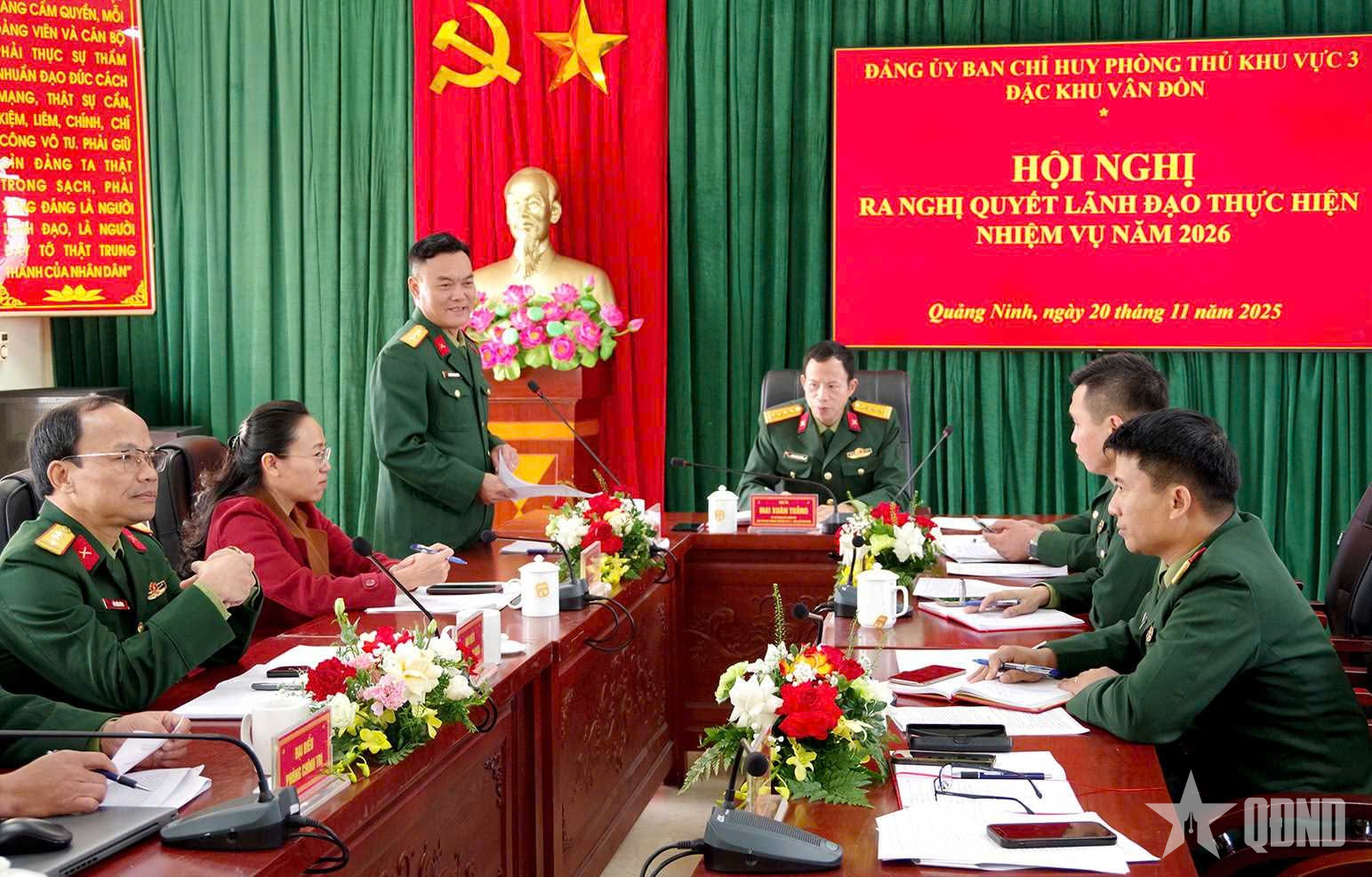 Được biết cũng trong sáng nay, Đảng ủy Ban Chỉ huy Phòng thủ khu vực 3 - Đặc khu Vân Đồn tổ chức hội nghị ra nghị quyết lãnh đạo thực hiện nhiệm vụ năm 2026.