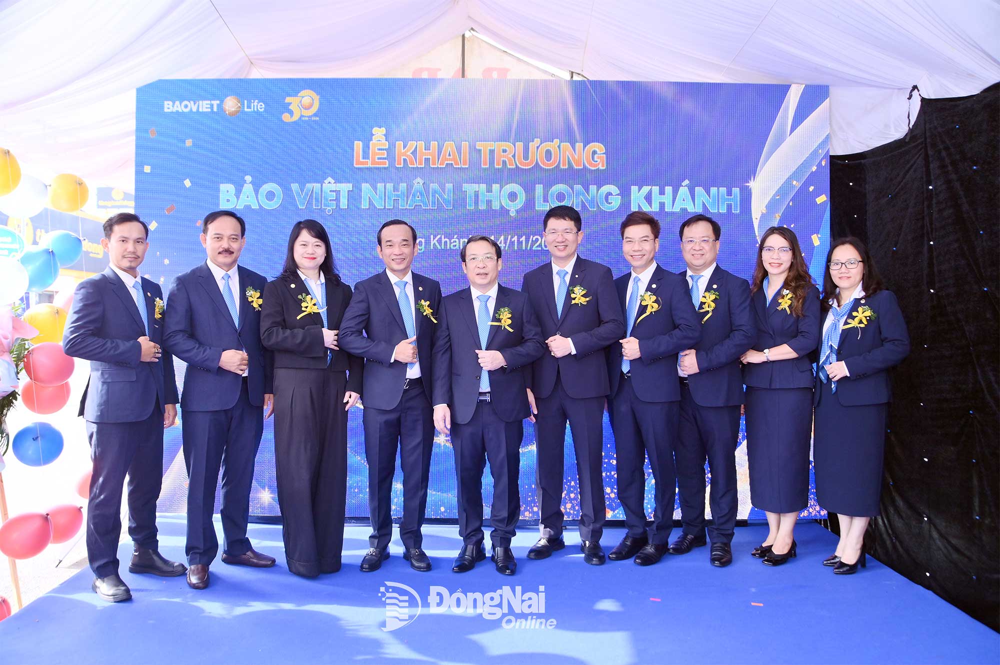 | Lãnh đạo Công ty Bảo Việt Nhân thọ và các cán bộ, nhân viên, quản lý trong buổi lễ khai trương Bảo Việt Nhân thọ Long Khánh. Ảnh: Khôi Nguyên |