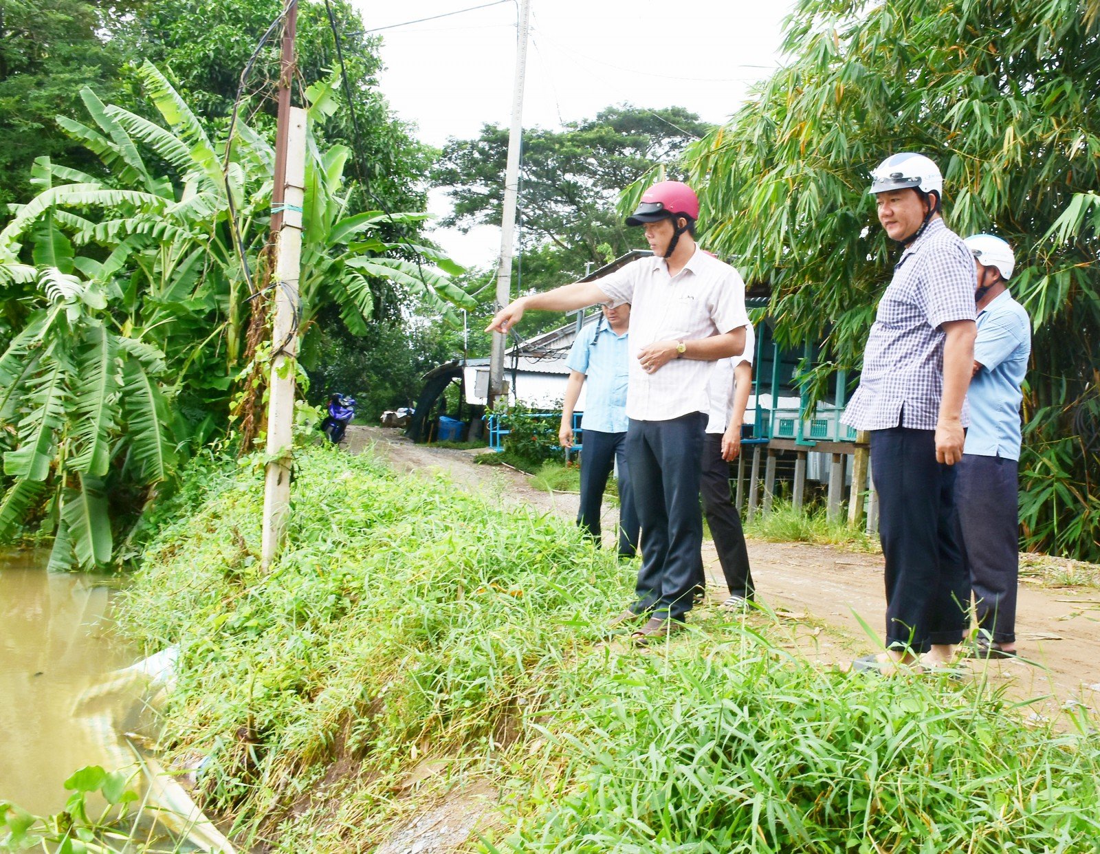 Bí thư Đảng ủy xã Thạnh Mỹ Tây kiểm tra các tuyến đê xung yếu