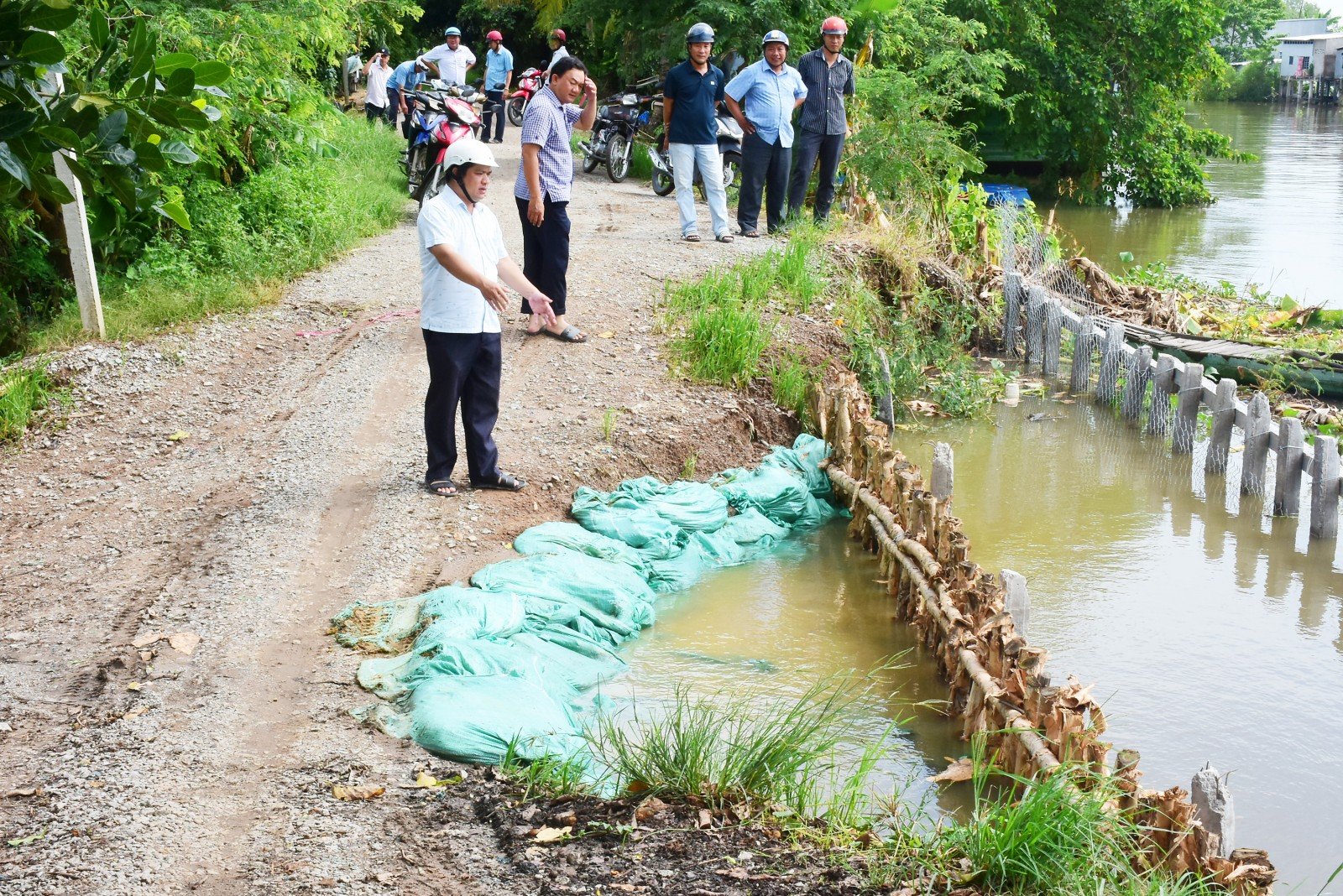 Hiện trạng các tuyến đê ổn định, mực nước ngoài kênh cách cao trình đỉnh đê khoảng 20 - 50cm. Các điểm xung yếu đã được UBND xã cử lực lượng phối hợp cùng người dân gia cố chắc chắn, hạn chế sạt lở nhằm bảo vệ sản xuất cho người dân.