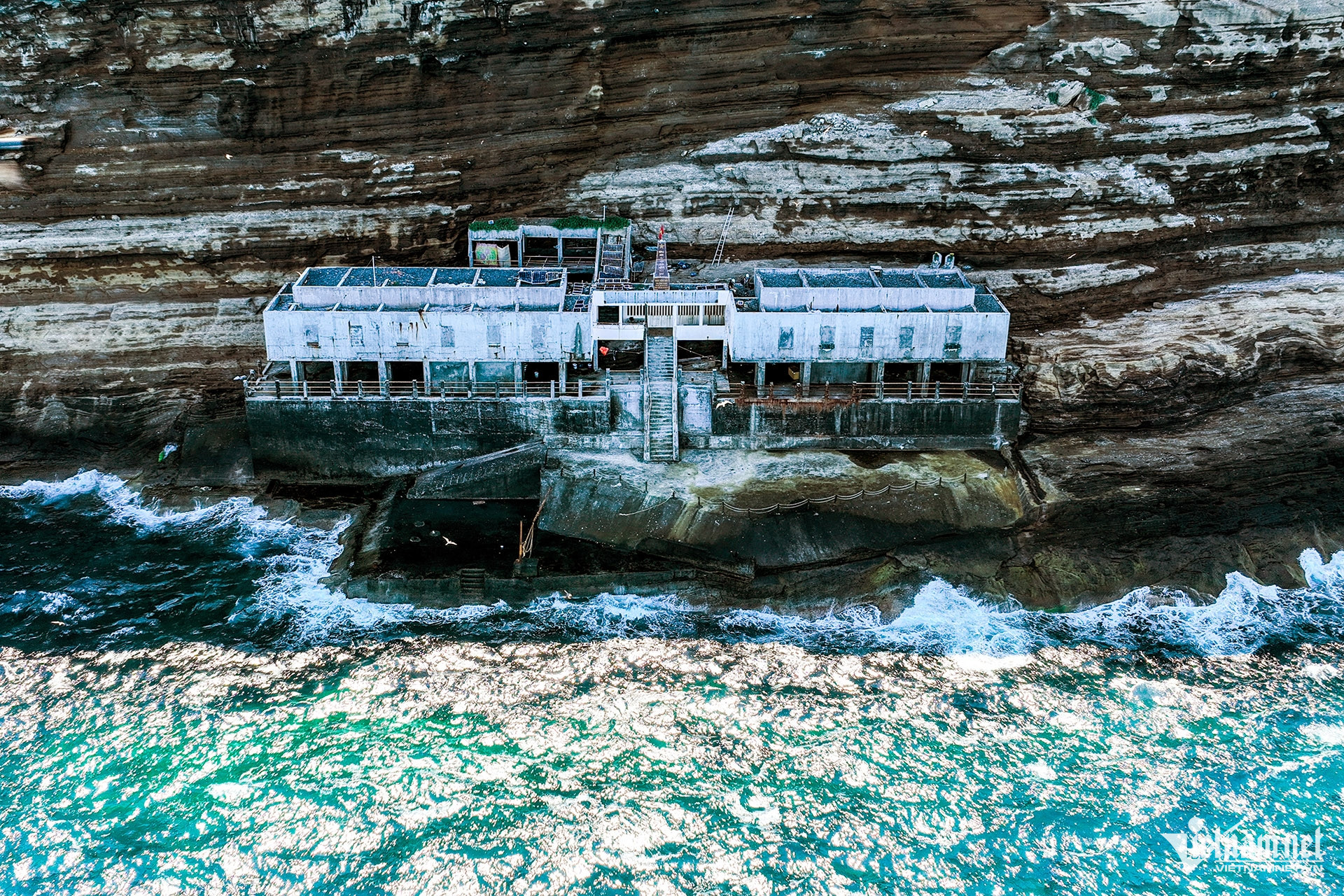 Cầu tàu cũng là nơi kết hợp làm nhà ở và chỗ làm việc của cán bộ trực trên đảo, có đường hầm xuyên sang phía bên kia và đi lên đỉnh đảo.