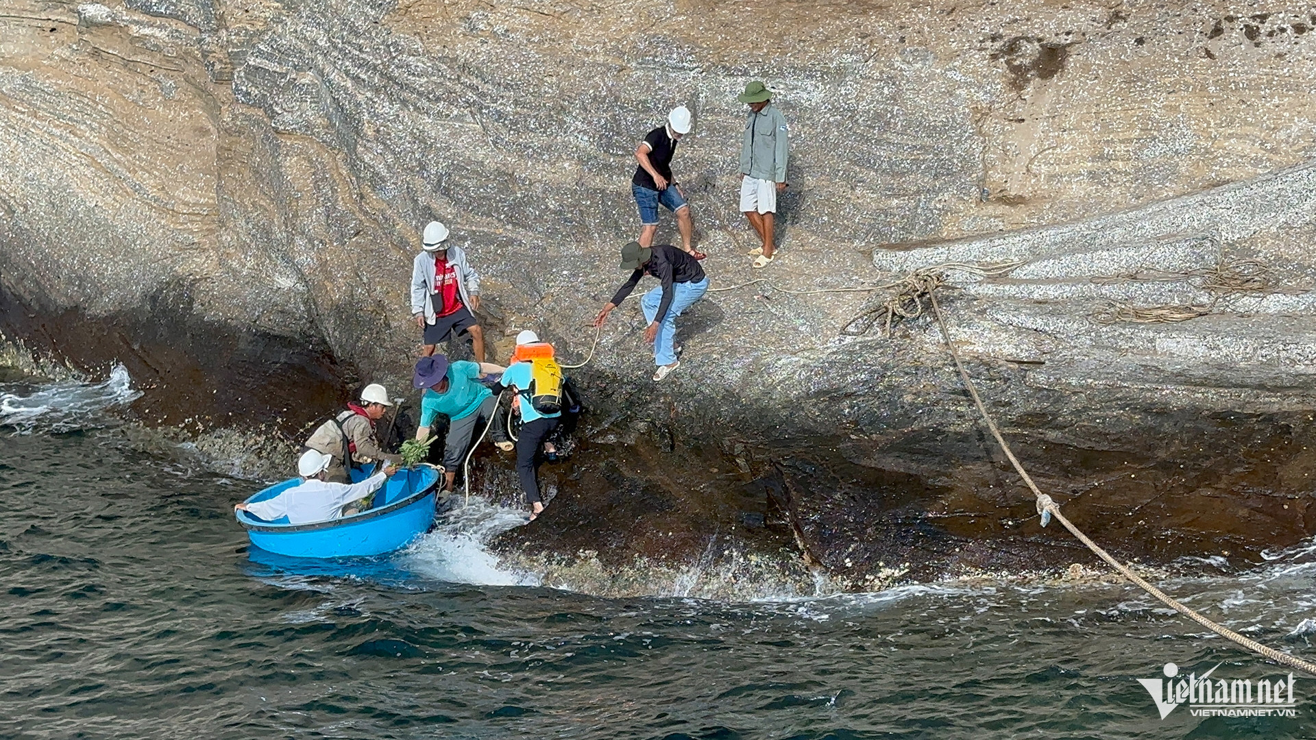 Khu vực này thường có sóng rất mạnh, nên tùy theo con nước và hướng sóng, thuyền trưởng sẽ quyết định neo tàu bên sườn nào. Trung tuần tháng 8 vừa qua, sóng biển đánh vào mạn đảo rất mạnh, tàu của đoàn công tác phải neo từ xa, thả người và hàng hóa di chuyển vào đảo bằng thuyền thúng.