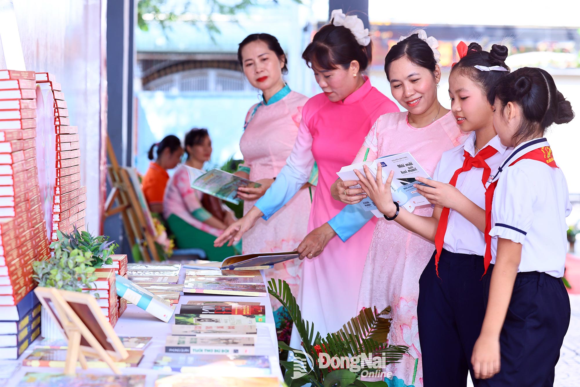 | Giáo viên và học sinh Trường Tiểu học Phan Chu Trinh (phường Tân Triều) cùng tham gia Ngày hội Văn hóa đọc. Ảnh: Công Nghĩa |