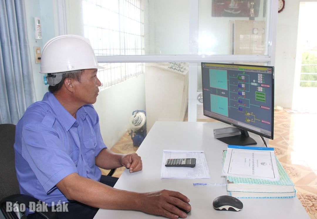 Nhân viên Công ty Cổ phần Cấp thoát nước Phú Yên vận hành hệ thống Scada giám sát quá trình sản xuất nước sạch. |