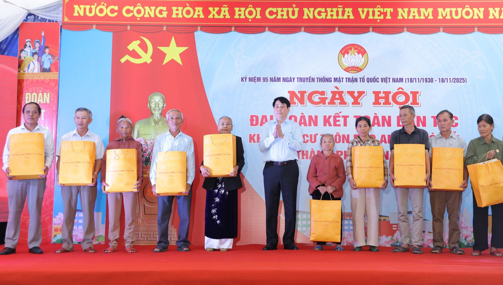 Các đồng chí lãnh đạo Đảng, Chính phủ, Quốc hội, Mặt trận Tổ quốc Việt Nam cũng tặng quà chính quyền, nhân dân xã Gò Nổi có hoàn cảnh khó khăn, chịu ảnh hưởng của thiên tai…