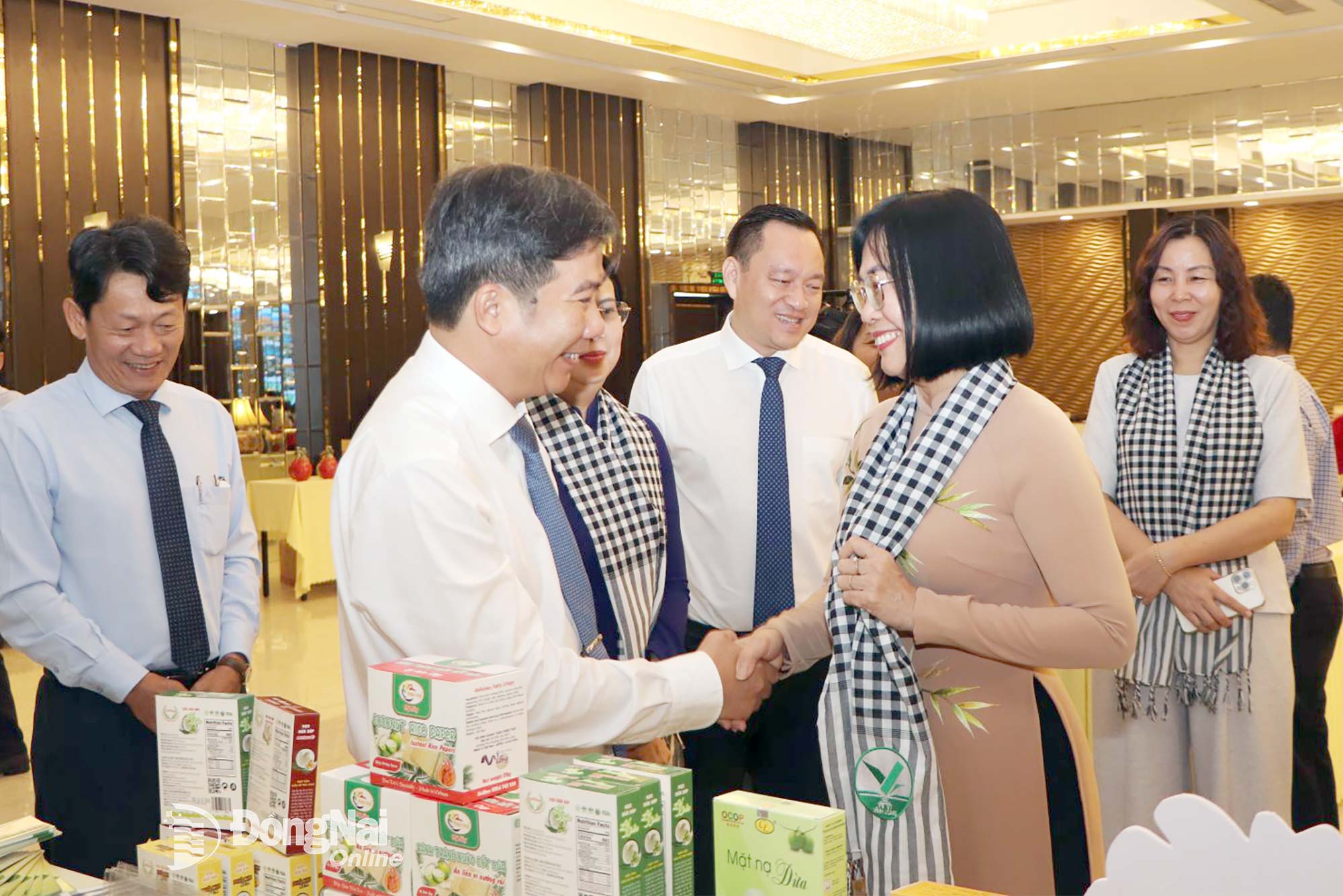| Tỉnh ủy viên, Phó Chủ tịch UBND tỉnh Đồng Nai Nguyễn Thị Hoàng thăm gian hàng trưng bày sản phẩm đặc trưng của tỉnh Trà Vinh. Ảnh: Ngọc Liên |