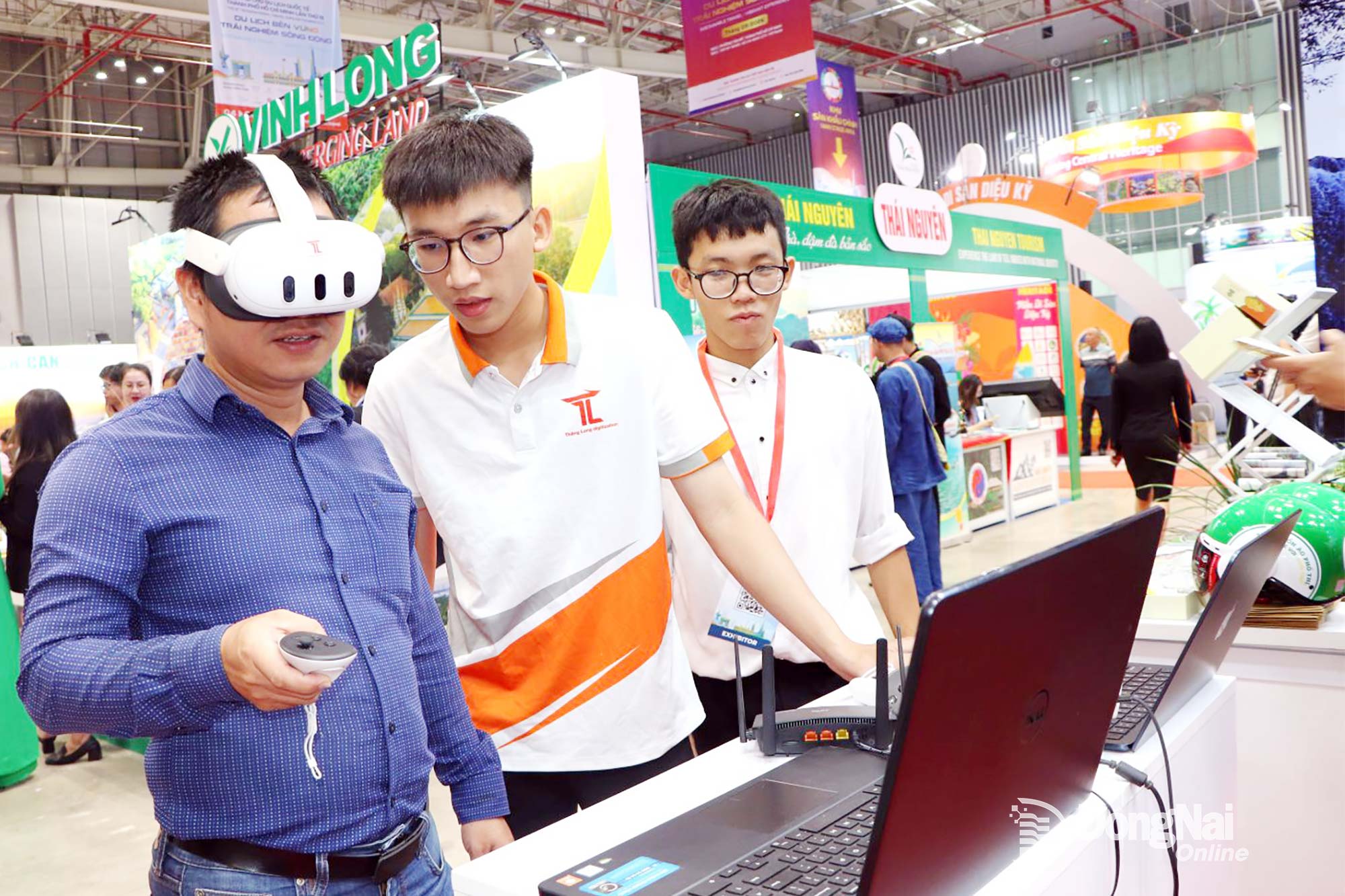 | Du khách trải nghiệm sản phẩm du lịch thực tế ảo của Đồng Nai tại Hội chợ du lịch quốc tế Thành phố Hồ Chí Minh 2025. Ảnh: Ngọc Liên |