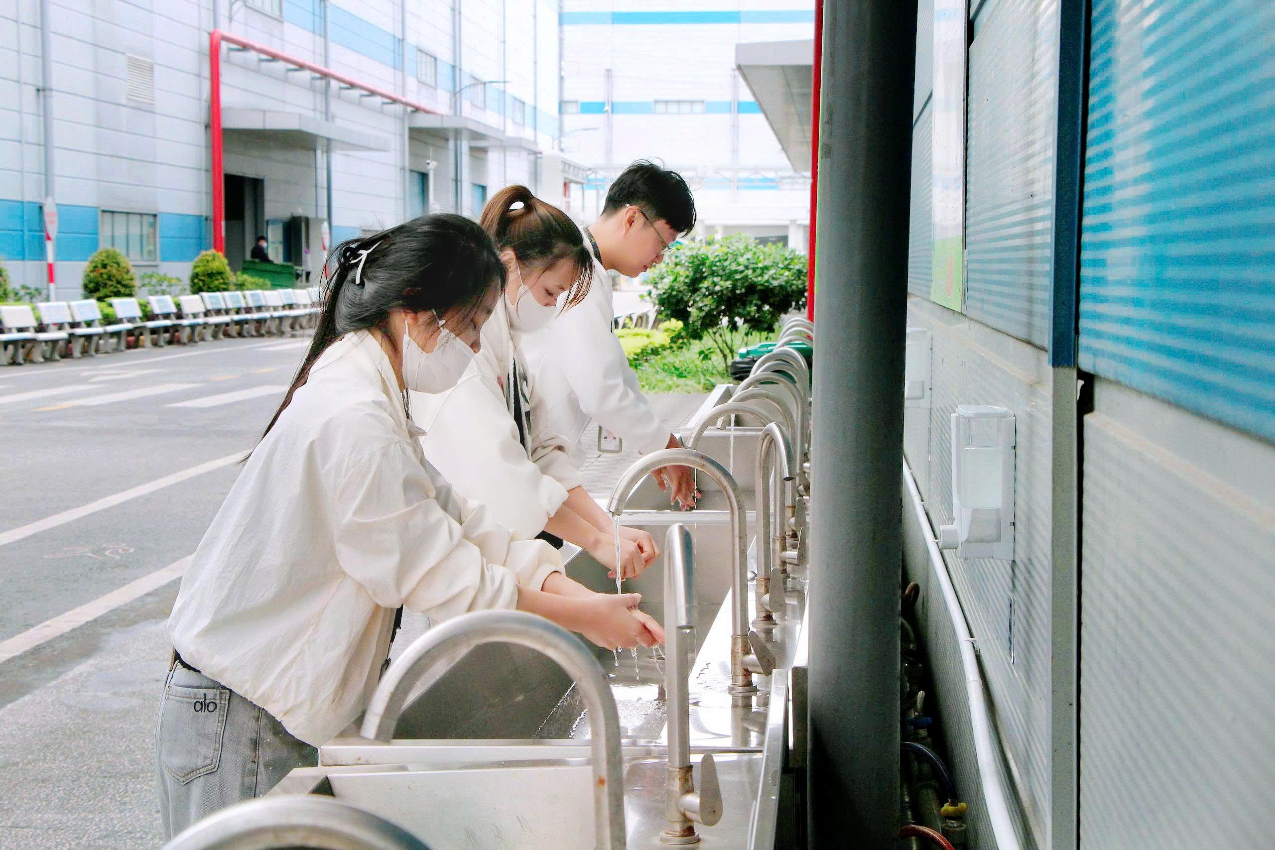 Ngay ngoài nhà ăn có nơi rửa tay. |