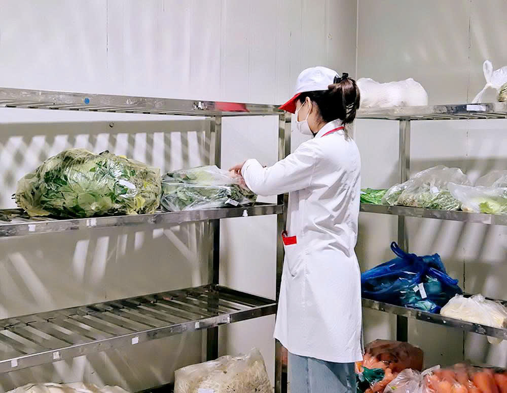 Mẫu thức ăn được lưu lại hằng ngày theo quy định. |