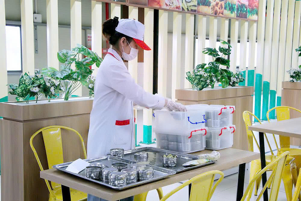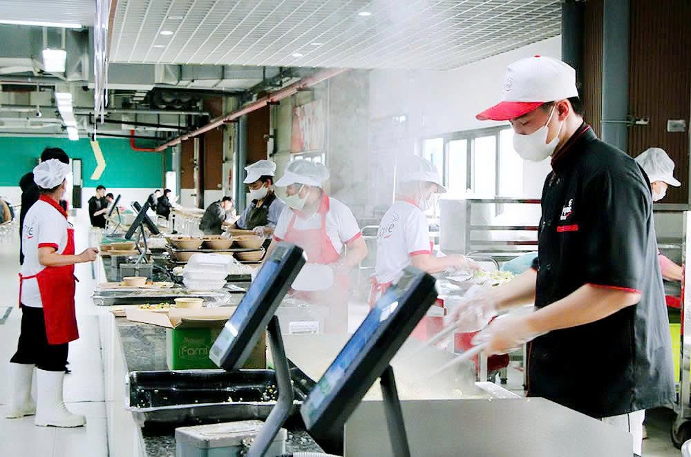 Công nhân quẹt thẻ khi lấy suất ăn. |