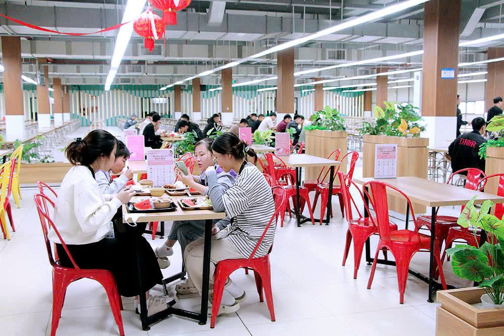 Nhằm chăm lo người lao động, Công ty đã đầu tư xây dựng hệ thống nhà ăn hiện đại, khang trang, đáp ứng các tiêu chuẩn vệ sinh an toàn thực phẩm. |
