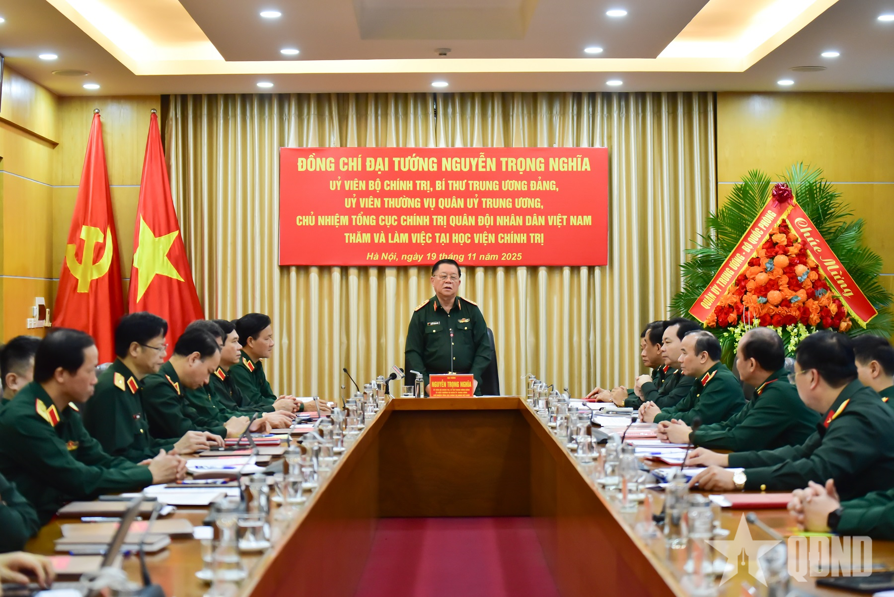 Đại tướng Nguyễn Trọng Nghĩa chúc mừng Học viện Chính trị nhân dịp kỷ niệm Ngày Nhà giáo Việt Nam. |
