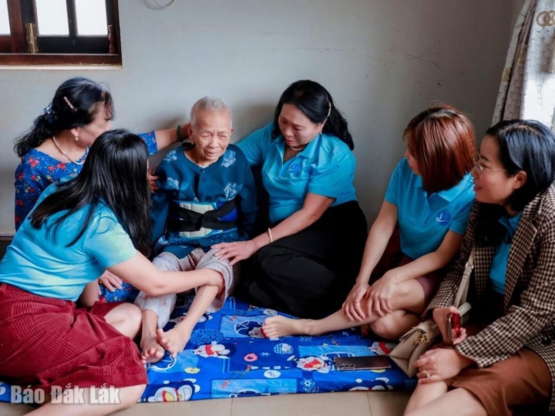 Hội Nữ doanh nhân tỉnh thăm Mẹ Việt Nam Anh hùng Tô Thị Chiểu (phường Tân Lập).