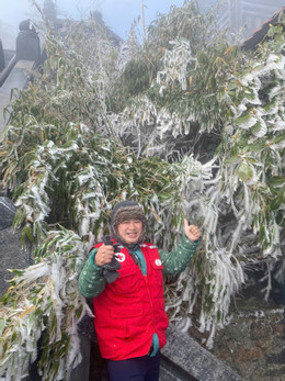 Sáng 5/1, nhiều du khách thích thú khi được chiêm ngưỡng băng giá xuất hiện dày trên đỉnh Fansipan (Sa Pa, Lào Cai).