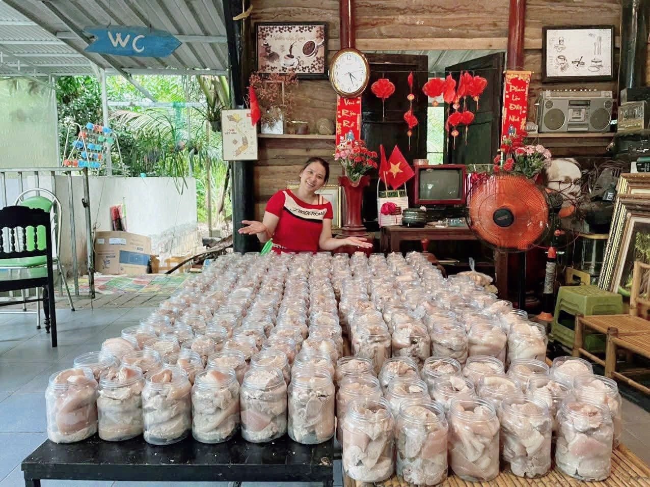 Người dân xã Thu Bồn làm hũ thịt ngâm nước mắm gửi ra miền Bắc. Ảnh: V.D