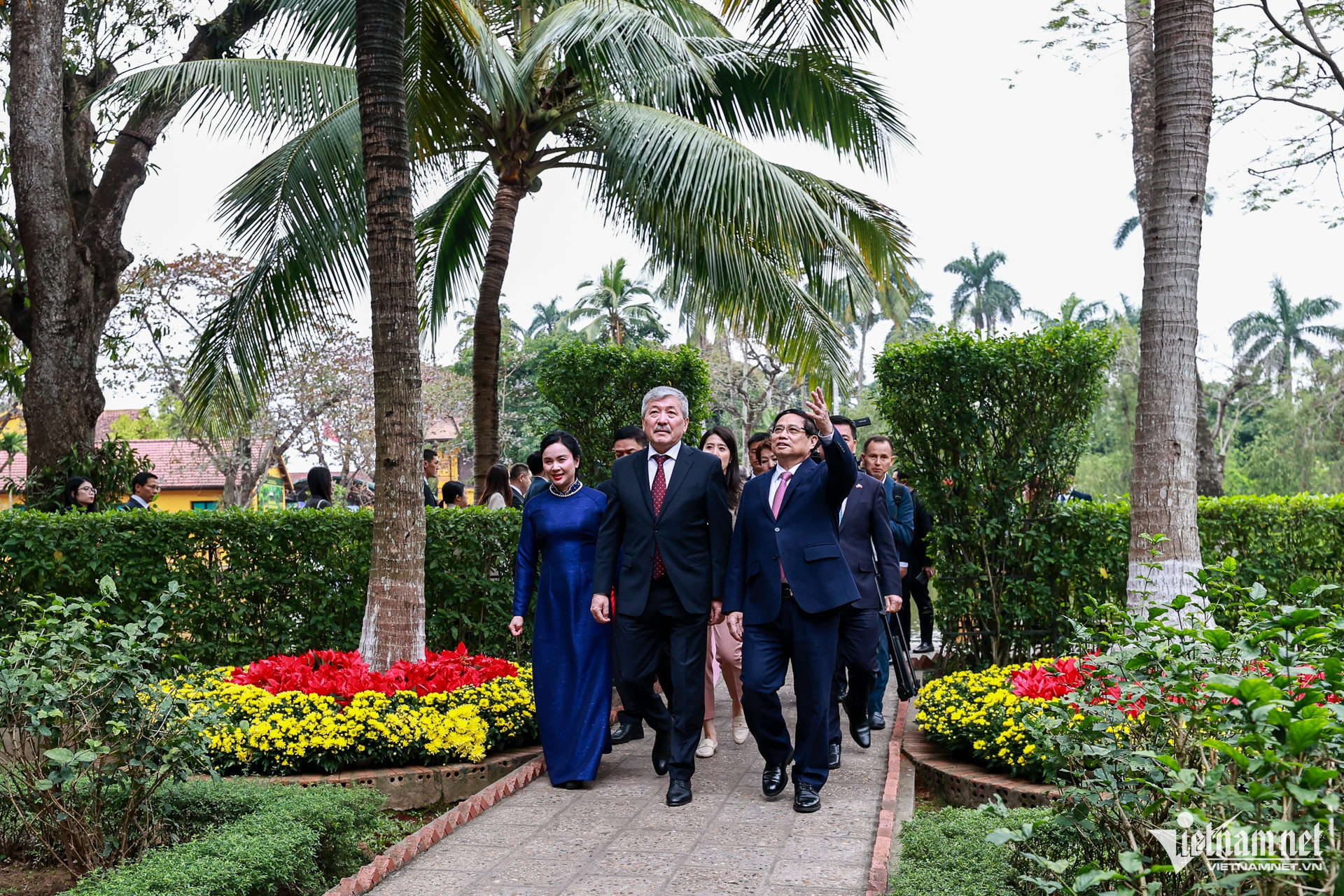 Thủ tướng Phạm Minh Chính đã giới thiệu với Thủ tướng Kyrgyzstan các cảnh quan trong Khu di tích Phủ Chủ tịch - nơi Chủ tịch Hồ Chí Minh đã gắn bó trong những năm tháng cuối cùng của cuộc đời.