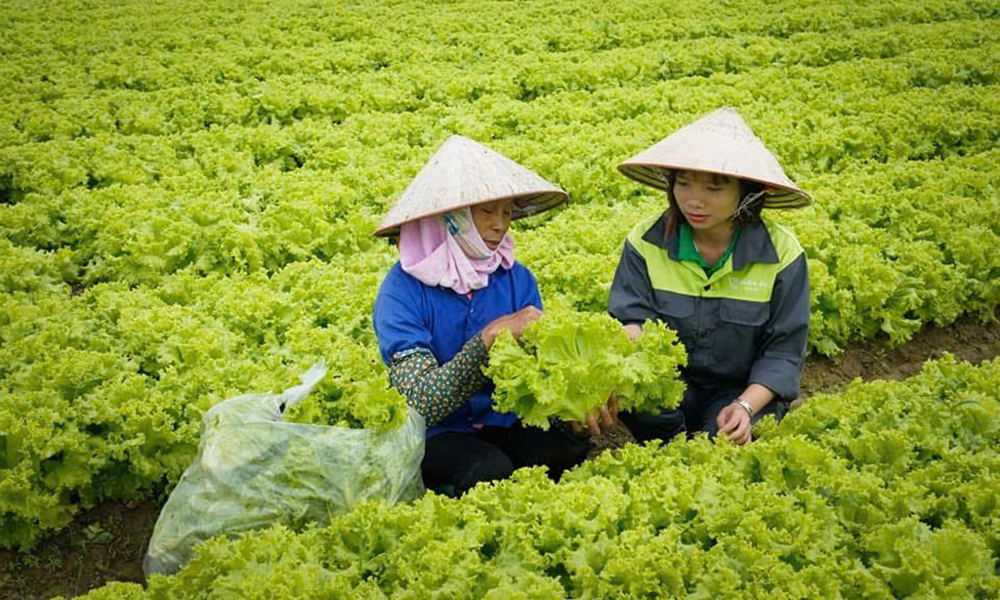 Thu hoạch nông sản tại Hợp tác xã Rau sạch Yên Dũng. |