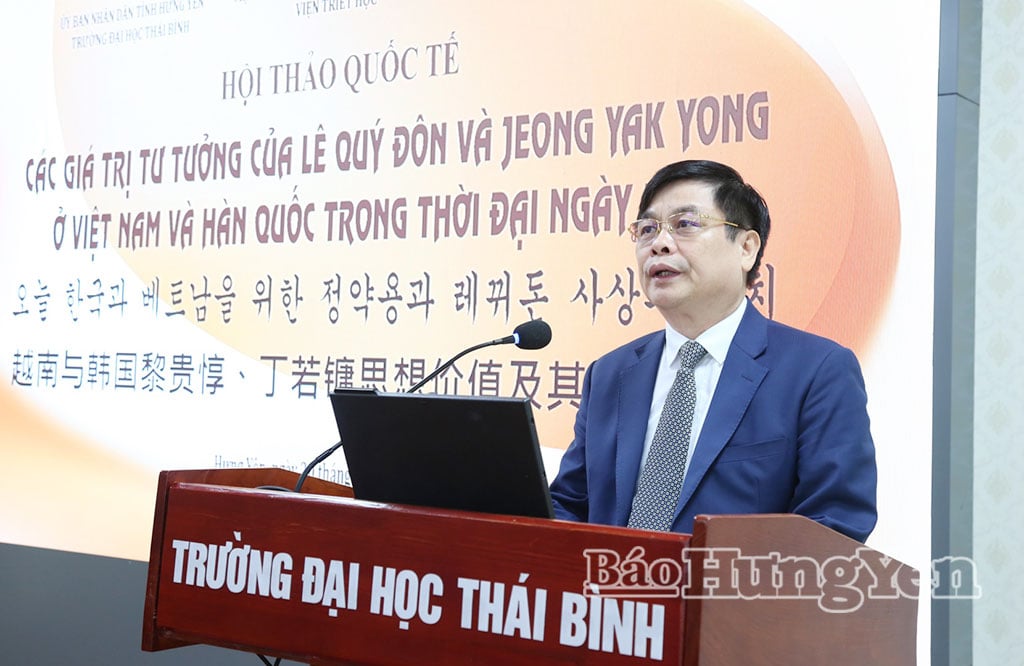 Phát biểu chào mừng hội thảo, đồng chí Phó Chủ tịch UBND tỉnh nhấn mạnh: là quê hương của Lê Quý Đôn, tỉnh Hưng Yên luôn tự hào và trân trọng di sản văn hóa, tư tưởng mà ông đã để lại. Việc nghiên cứu về một danh nhân văn hóa tại chính vùng đất đã sinh ra và nuôi dưỡng ông không chỉ mang ý nghĩa học thuật mà còn giáo dục sâu sắc, giúp các thế hệ trẻ và người dân Hưng Yên hiểu rõ hơn, tự hào hơn về truyền thống văn hóa quê hương, góp phần quan trọng vào việc xây dựng nền văn hóa Việt Nam tiên tiến, đậm đà bản sắc dân tộc, đồng thời định hướng cho việc phát triển con người và xã hội Việt Nam trong công cuộc đổi mới, phát triển đất nước hiện nay. Nghiên cứu, khai thác, so sánh và phát huy các giá trị tư tưởng của Lê Quý Đôn với Jeong Yak Yong, nhà tư tưởng kiệt xuất của Hàn Quốc cùng thời có ý nghĩa đặc biệt sâu sắc trong bối cảnh quan hệ Việt Nam - Hàn Quốc đang ngày càng phát triển bền chặt và toàn diện.