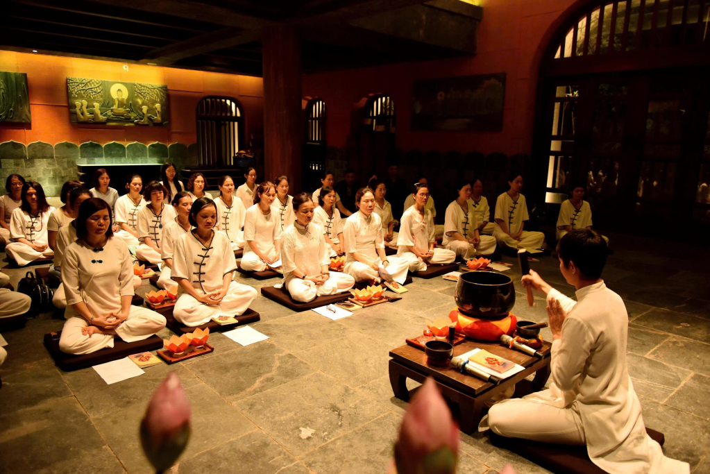 Du khách trải nghiệm thực hành thiền tại Yên Tử. Ảnh: ĐVCC