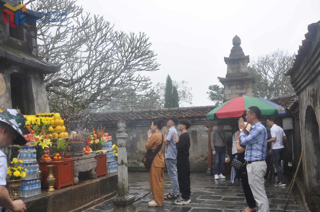 Khách hành hương lễ Phật tại Tháp tổ khi về Yên Tử mùa hội xuân 2025.