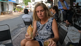 Bữa đầu tiên, Anna quyết định tới quầy bánh mì vỉa hè ngay gần khách sạn mà họ lưu trú để ăn sáng. Cô gọi 1 phần bánh mì chả kèm trứng ốp la, giá 20.000 đồng.