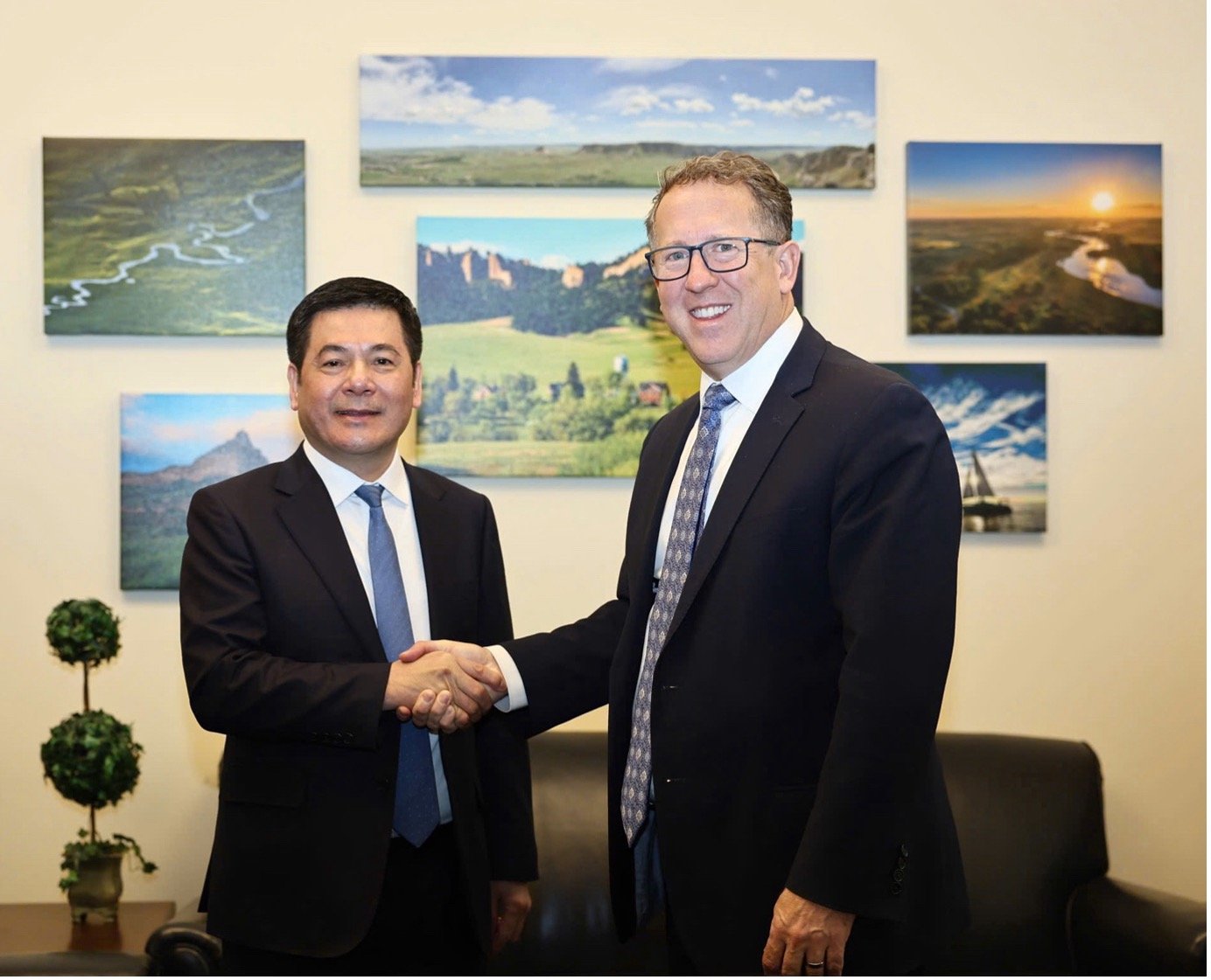 រដ្ឋមន្ត្រីក្រសួង ឧស្សាហកម្ម និងពាណិជ្ជកម្ម លោក Nguyen Hong Dien ធ្វើការជាមួយសមាជិកសភា Adrian Smith (រដ្ឋ Nebraska គណបក្សសាធារណរដ្ឋ)