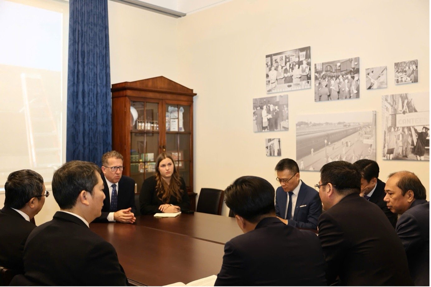 នាព្រឹកថ្ងៃទី១៣ ខែវិច្ឆិកា តាមម៉ោងអាមេរិក នៅទីក្រុង Washington DC រដ្ឋមន្ត្រីក្រសួងឧស្សាហកម្ម និងពាណិជ្ជកម្ម លោក Nguyen Hong Dien បានជួបពិភាក្សាការងារជាមួយសមាជិកសភា Adrian Smith (Nebraska, Republican Party) ប្រធានអនុគណៈកម្មាធិការពាណិជ្ជកម្មនៃសភាអាមេរិក តំណាងឲ្យសំឡេងនៃវិស័យកសិកម្មអាមេរិក។