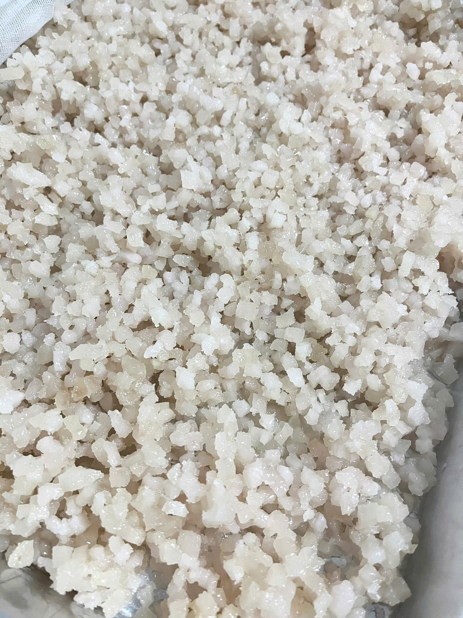 បន្ទាប់មក យកយៈសាពូនមី kumquat, យៈសាពូនមី , យៈសាពូនមី , ខ្ញី អោយល្អិត រួចហាន់ជាបន្ទះស្តើងៗ គ្រាប់ស្វាយចន្ទី យៈសាពូនមី និងយៈសាពូនមី