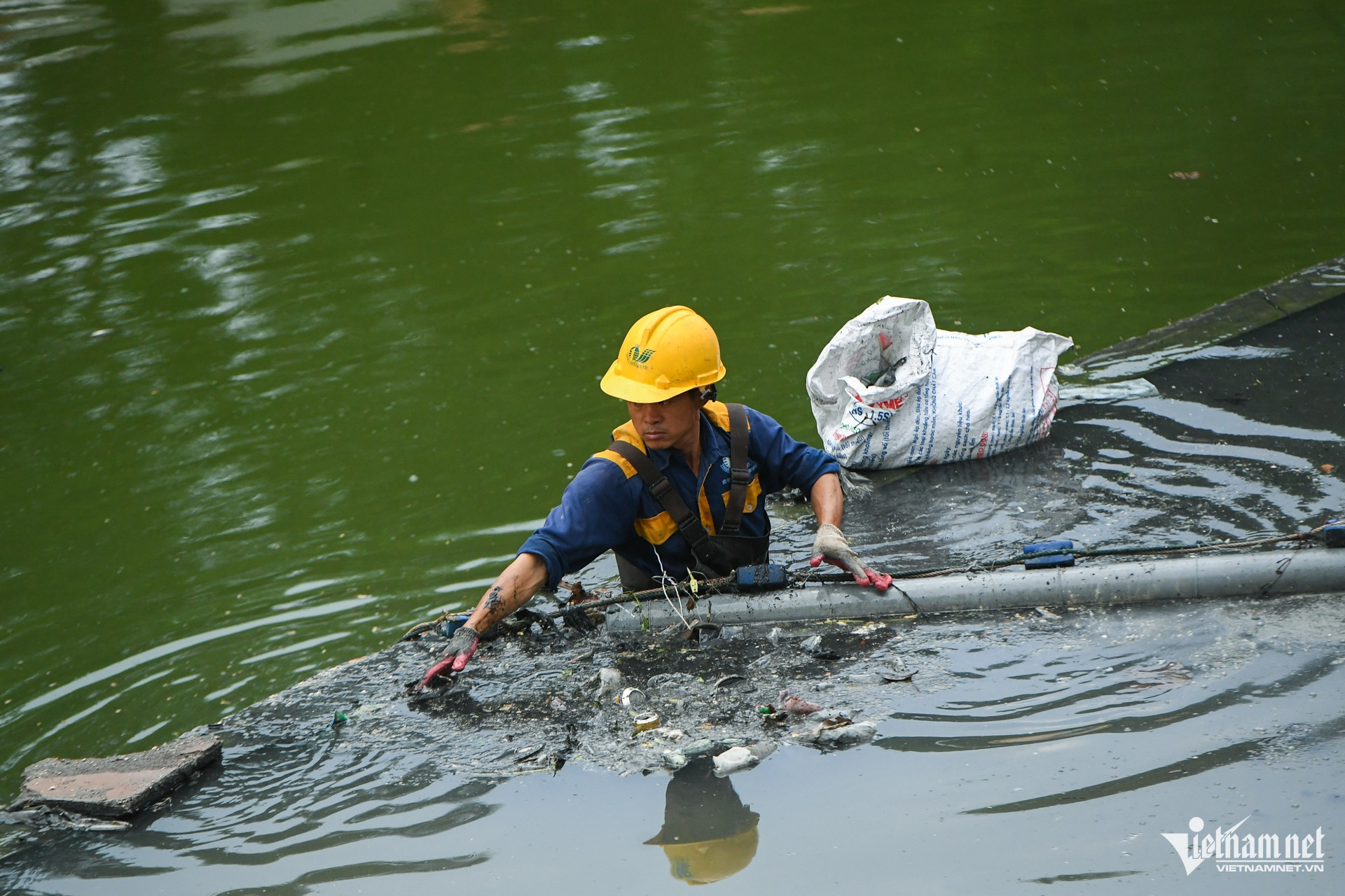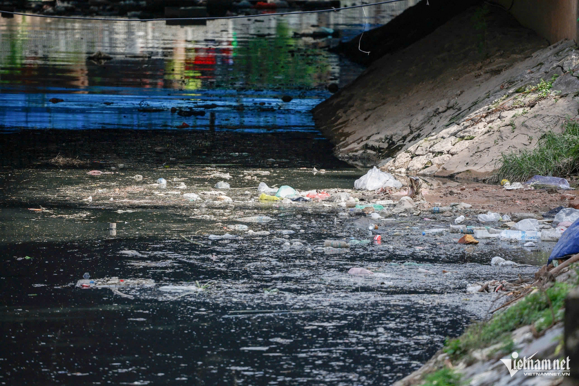 ទន្លេ To Lich ដែលហូរកាត់ទីនេះបានប្រែជាងងឹតម្តងទៀត។