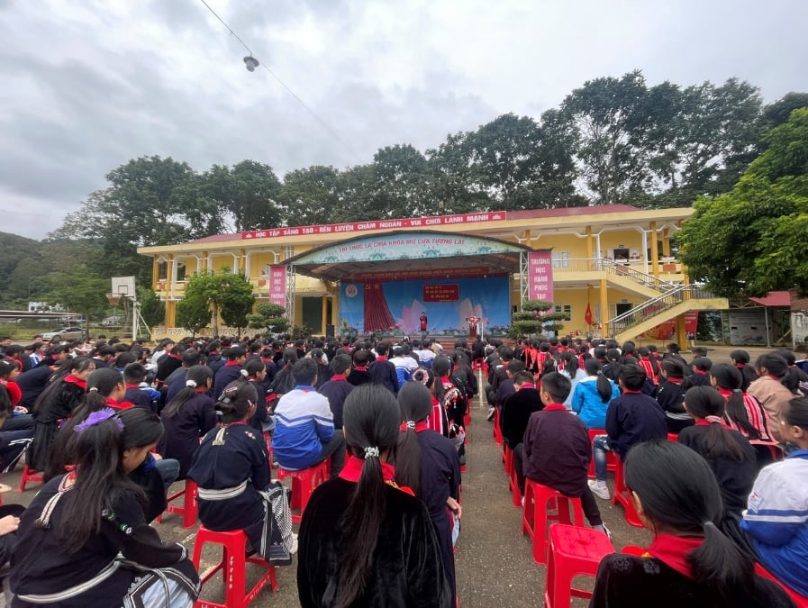 នៅសាលាអនុវិទ្យាល័យ Nguyen Binh សម្រាប់ក្រុមប្រឹក្សាជនជាតិភាគតិច។