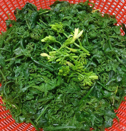ដើម្បីធ្វើសាឡាត់ឱ្យមានរសជាតិឆ្ងាញ់ អ្នកជ្រើសរើសយកពន្លក និងស្លឹកខ្ចី រួចលាងទឹកឱ្យពុះ រួចស្រង់ចេញ ។