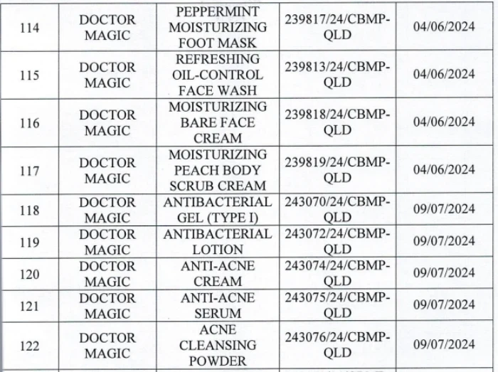 រដ្ឋបាលឱសថក៏បានស្នើសុំឱ្យក្រុមហ៊ុន MK Skincare ផ្តល់លទ្ធផលតេស្ត និងកំណត់ត្រាព័ត៌មានផលិតផលសម្រាប់ផលិតផលចំនួន 162 ដែលត្រូវបានផ្តល់លេខបង្កាន់ដៃប្រកាស។