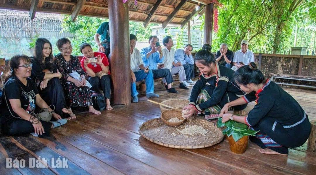 | អ្នកទេសចរស្វែងយល់អំពីការផលិតស្រារបស់ប្រជាជន Ede ។ រូបថត៖ Huu Hung |