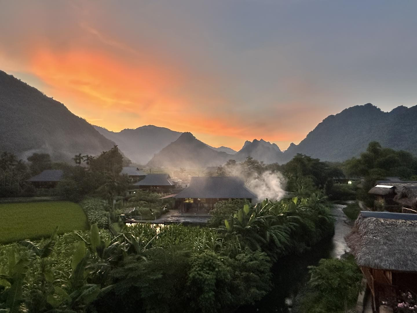 ភ្ញៀវដេកក្នុងផ្ទះឈើប្រណិត។ ព្រឹកឡើងពេលក្រោកពីដំណេកបើកទ្វាផ្ទះឈើប្រក់ស្បូវ ឃើញពពកអណ្តែតពាសពេញភូមិ ហើយមានផ្សែងហុយចេញពីផ្ទះបាយដែលរុំជុំវិញដំបូលស្លឹកត្នោត។
