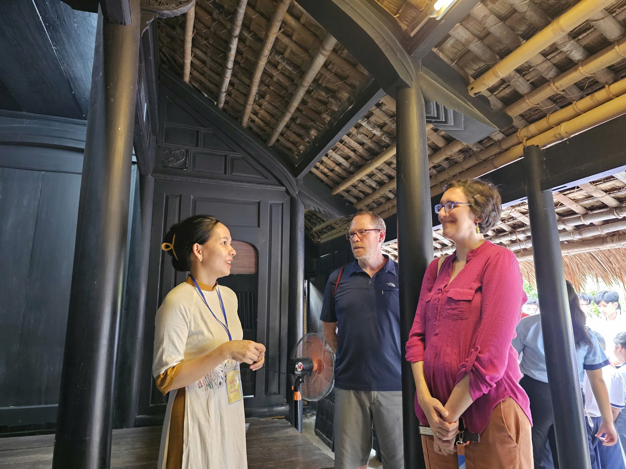 | ភ្ញៀវទេសចរបរទេសទៅទស្សនាវត្ថុបុរាណរបស់ពូនៅភូមិ Duong No |