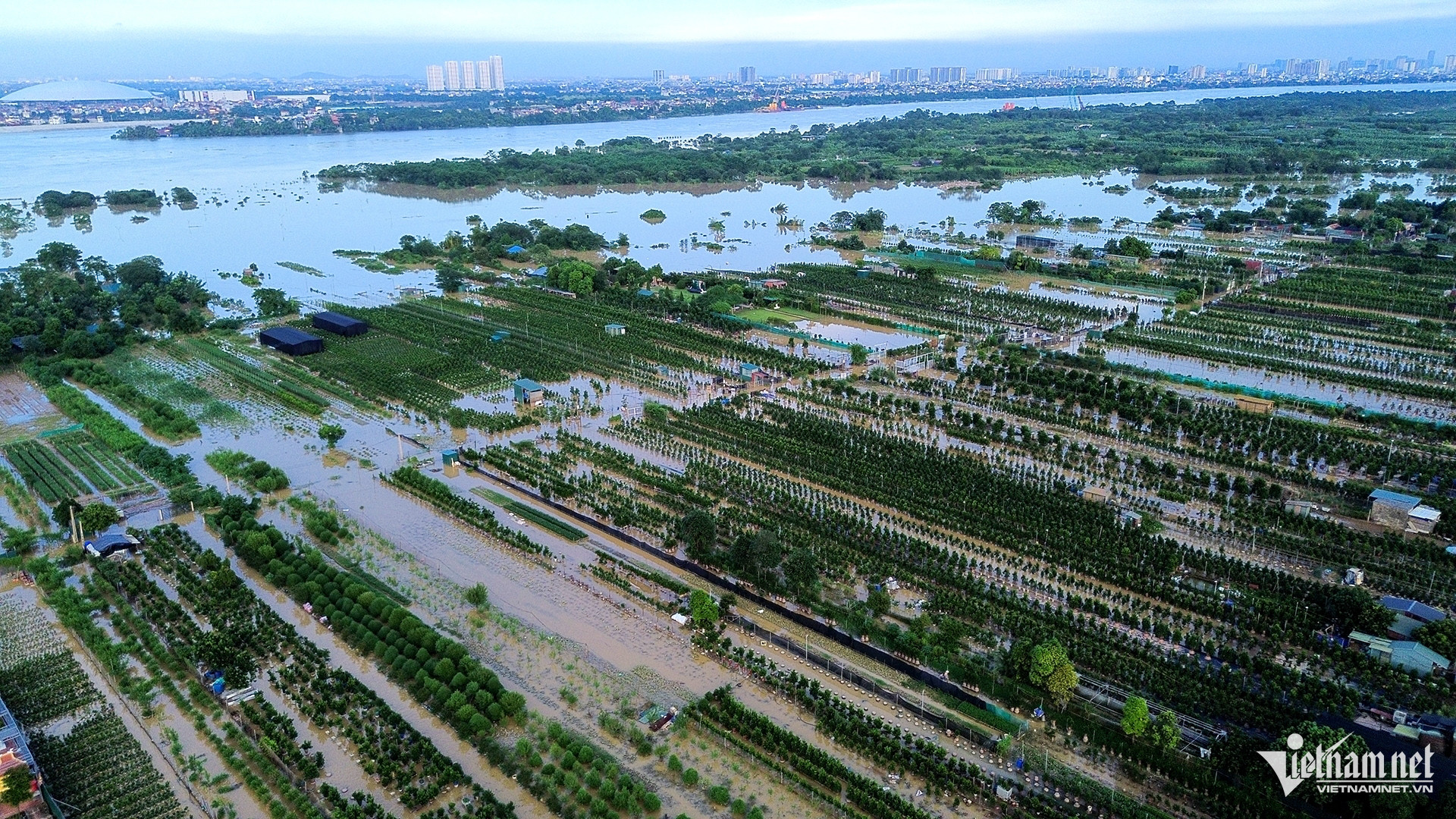 ភ្លៀងដែលបង្កឡើងដោយព្យុះលេខ 10 និងកម្ពស់ទឹកទន្លេក្រហមបានជន់លិចពាក់កណ្តាលនៃតំបន់ដាំដុះ peach និង kumquat សម្រាប់បុណ្យចូលឆ្នាំថ្មីនៅក្នុងភូមិ Phu Thuong និង Nhat Tan សង្កាត់ Tay Ho ( ហាណូយ )។