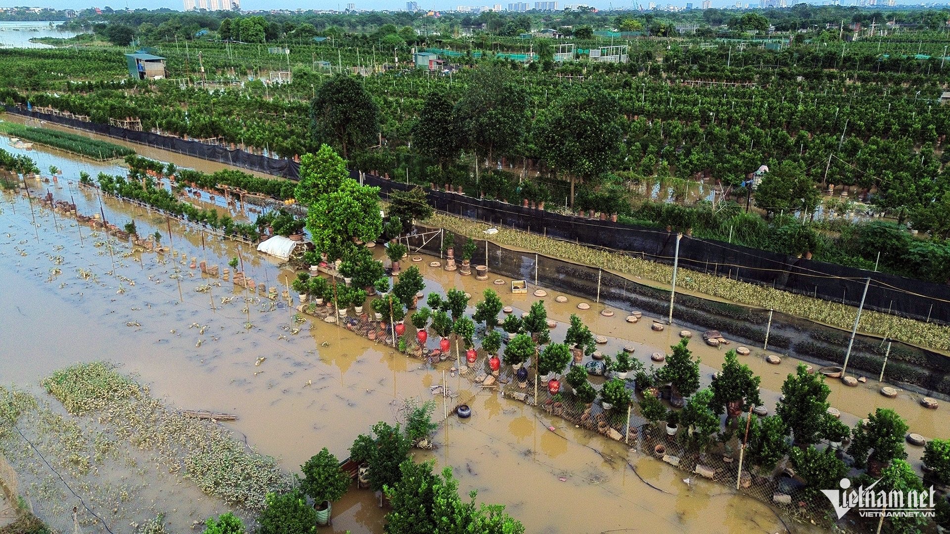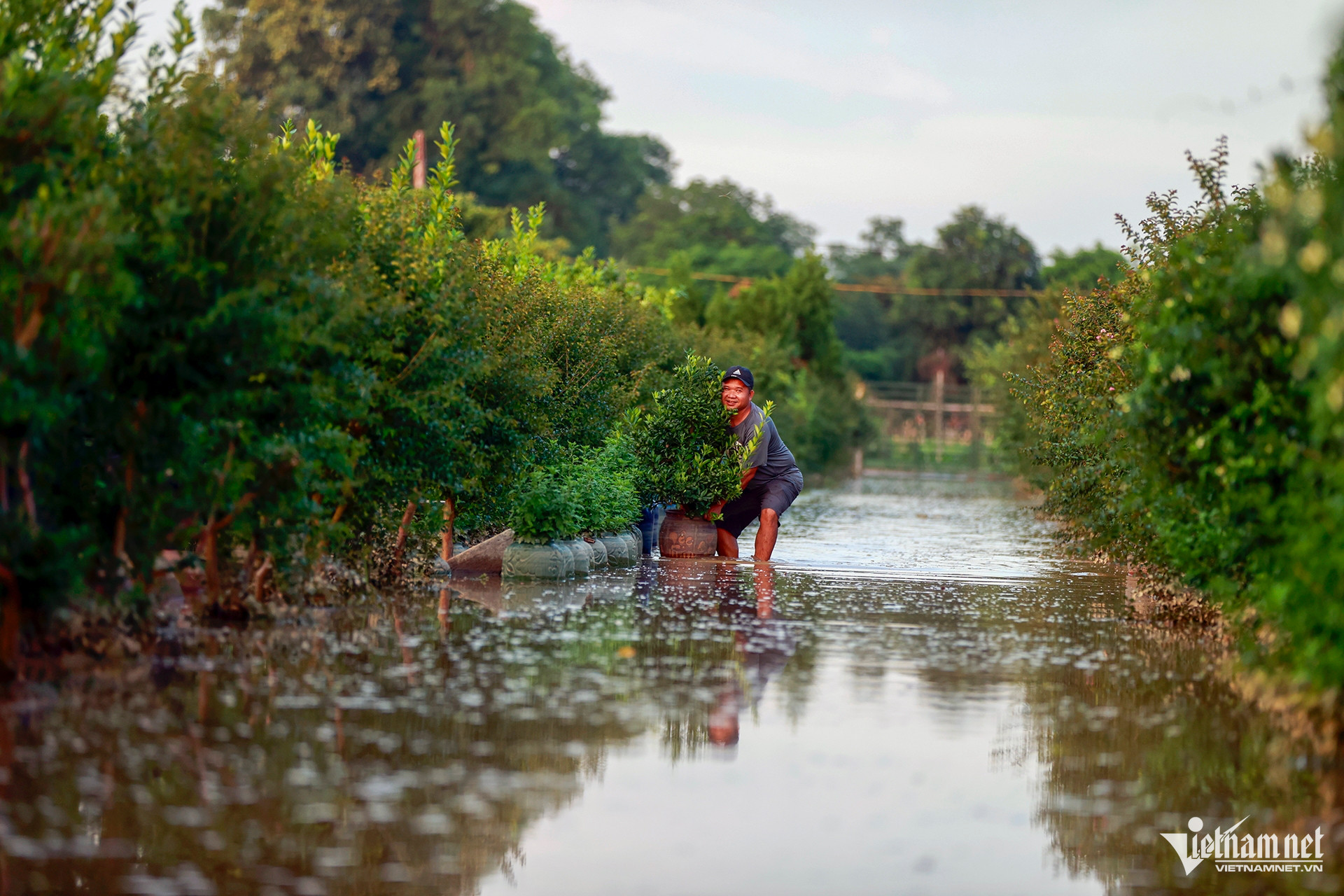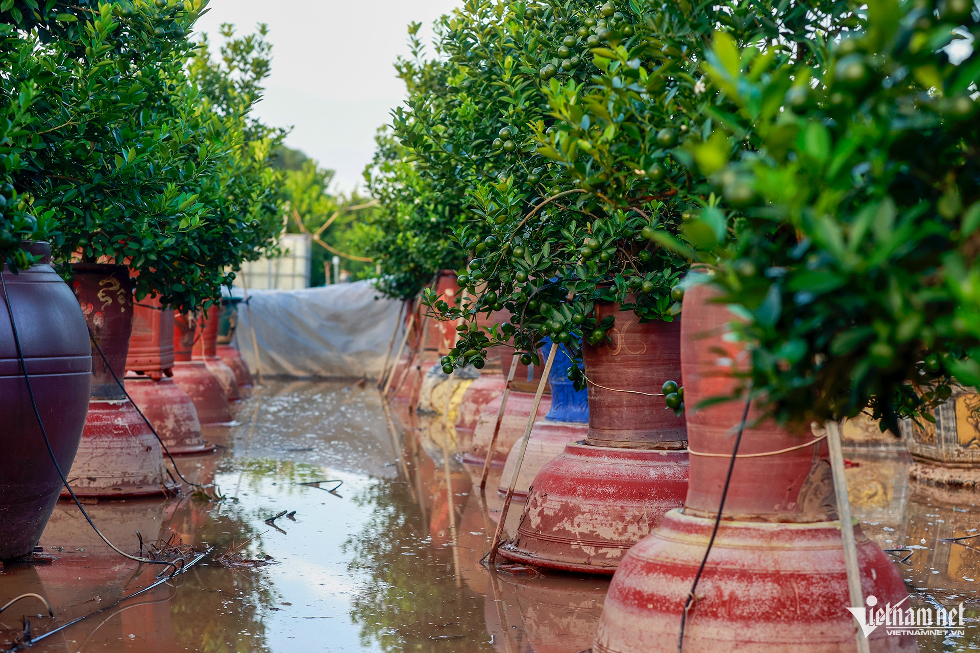 សួន kumquat របស់លោក Ky Anh (Tu Lien ទីក្រុងហាណូយ) ក៏ត្រូវបានលិចក្នុងទឹកដែរ ចំណុចជ្រៅបំផុតនៅតែ 80cm គិតត្រឹមរសៀលថ្ងៃទី 2 ខែតុលា។ "ឆ្នាំមុនបន្ទាប់ពីព្យុះទីហ្វុង Yagi គ្រួសាររបស់ខ្ញុំបានខាតបង់ប្រាក់ជាង 4 ពាន់លានដុងលើរុក្ខជាតិឈើដើម្បីលម្អសម្រាប់ Tet ប៉ុន្តែវាបានរលត់អស់ទៅហើយ។ ឆ្នាំនេះ ខណៈពេលដែលទឹកទន្លេឡើងថ្លៃម្តងទៀតនៅក្នុងសួនច្បារ។ លោក គី អាញ់ មានប្រសាសន៍ថា ក្នុងរយៈពេល ១-២ ថ្ងៃ សួនច្បារនឹងមិនប៉ះពាល់អ្វីឡើយ។