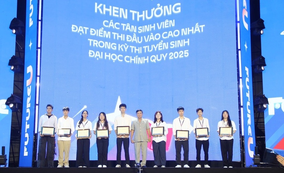 សាកលវិទ្យាល័យ Thang Long បានផ្តល់កិត្តិយស និងផ្តល់រង្វាន់ដល់និស្សិតថ្មីឆ្នើមទាំង ១០ របស់ K38 ។ រូបថត៖ Minh Phong