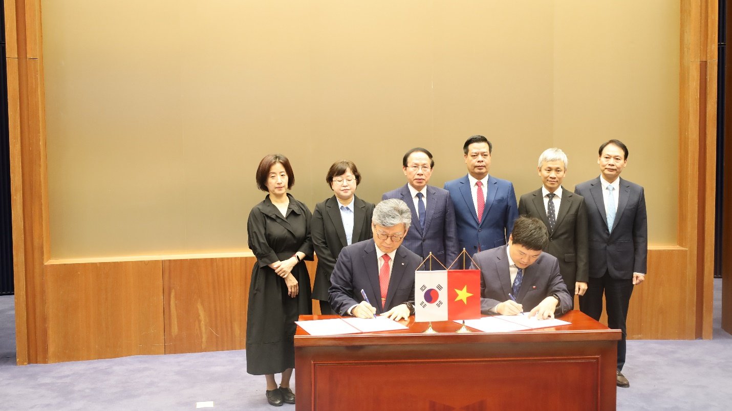 ក្នុងវត្តមានរបស់លេខាគណៈកម្មាធិការបក្សទីក្រុង Le Tien Chau និងគណៈប្រតិភូ អនុប្រធានគណៈកម្មាធិការប្រជាជនទីក្រុង Hoang Minh Cuong និងប្រធានវិទ្យាស្ថាន KIST Sang Rok Oh ពេញចិត្ត ពិធីចុះហត្ថលេខាលើអនុស្សារណៈយោគយល់គ្នា (MOU) ស្តីពីកិច្ចសហប្រតិបត្តិការលើវិស័យវិទ្យាសាស្ត្រ បច្ចេកវិទ្យា និងនវានុវត្តន៍