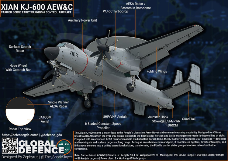 ប្រទេសចិនបានដាក់រហ័សនាមថា យន្តហោះប្រកាសអាសន្ន KJ-600 នៅលើនាវាផ្ទុកយន្តហោះ Fujian ណាត្រា។