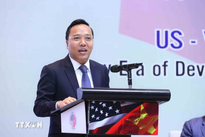 ដោយសំដៅលើទំនាក់ទំនងកិច្ចសហប្រតិបត្តិការវៀតណាម-អាមេរិក ឧបនាយករដ្ឋមន្ត្រីបានអះអាងថា ឆ្នាំ ២០២៥ គឺជាខួបលើកទី ៣០ នៃការបង្កើតទំនាក់ទំនងការទូតរវាងវៀតណាម និងសហរដ្ឋអាមេរិក។ ដំណើរដែលពោរពេញទៅដោយកិច្ចខិតខំប្រឹងប្រែងប្រែក្លាយទំនាក់ទំនងរវាងប្រទេសទាំងពីរពី "ការប្រឈមមុខដាក់គ្នាទៅជាភាពជាដៃគូ"; ហើយទន្ទឹមនឹងនោះ លោកបានសង្ខេបឃ្លាសំខាន់ៗចំនួន ៥ ដើម្បីនិយាយអំពីទំនាក់ទំនងវៀតណាម-អាមេរិក នោះគឺ៖ “ទំនុកចិត្តជាយុទ្ធសាស្ត្រ កិច្ចសហប្រតិបត្តិការលើគ្រប់ជ្រុងជ្រោយ ការអភិវឌ្ឍន៍ឈ្នះឈ្នះ ភាពជាដៃគូប្រកបដោយការទទួលខុសត្រូវ និងការបង្កើតអនាគត”។