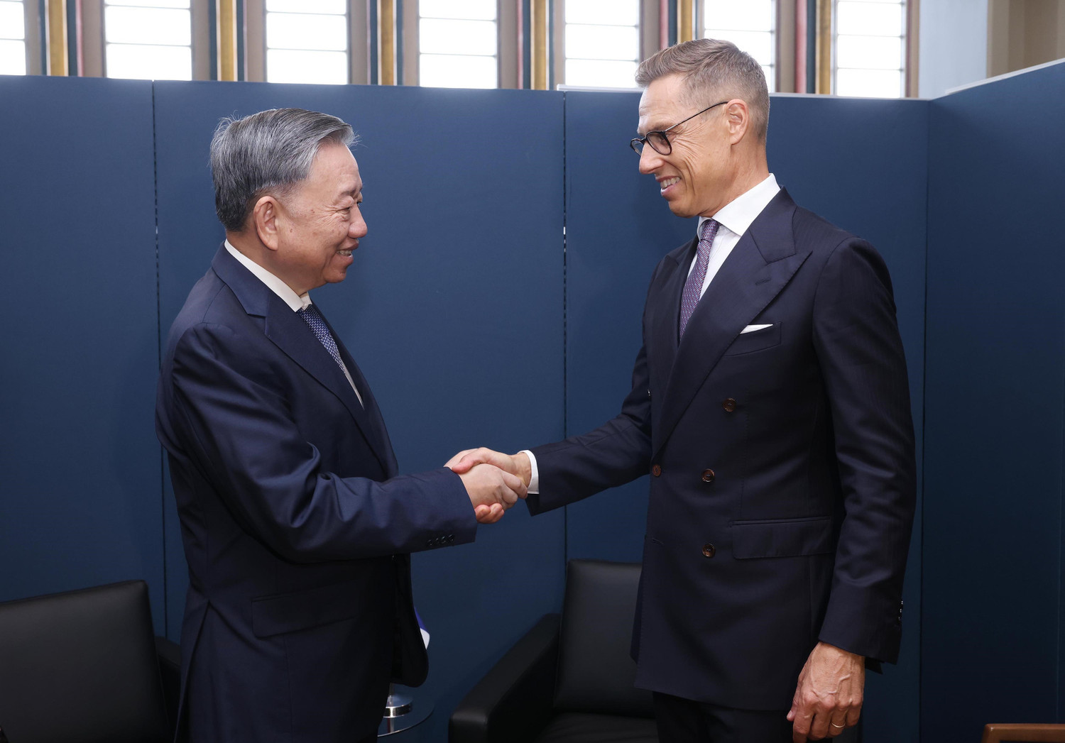 អគ្គលេខាបក្ស To Lam បានជួបជាមួយប្រធានាធិបតីហ្វាំងឡង់ Alexander Stubb ក្នុងឱកាសចូលរួមសម័យប្រជុំលើកទី ៧៩ នៃមហាសន្និបាតអង្គការសហប្រជាជាតិ នាខែកញ្ញា ឆ្នាំ ២០២៤។ រូបថត៖ VNA