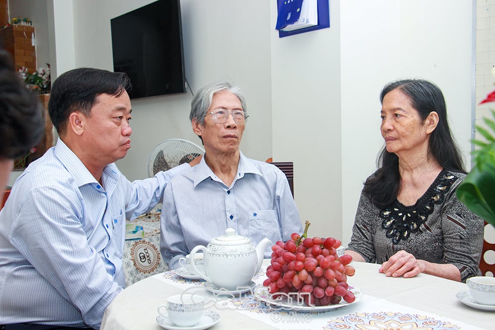 នៅឯគ្រួសាររបស់លោកគ្រូអ្នកគ្រូ Ly Van Phu មិត្តសម្លាញ់ Huynh Quoc Viet បានសួរសុខទុក្ខអំពីសុខភាព ចែករំលែកការលំបាកនាពេលបច្ចុប្បន្ន និងថ្លែងអំណរគុណចំពោះការរួមចំណែកដ៏ឆ្នើមរបស់គាត់ក្នុងអំឡុងពេលធ្វើការនៅវិទ្យាល័យ Ho Thi Ky និងវិទ្យាល័យ Phan Ngoc Hien សម្រាប់អំណោយ។ គាត់បានទទួលស្គាល់ថា ប្រធានាធិបតី បានផ្តល់រង្វាន់ដល់គាត់នូវមេដាយការងារថ្នាក់ទីបីដែលជាភស្តុតាងនៃការរួមចំណែកឆ្នើមរបស់គាត់; ហើយទន្ទឹមនឹងនោះ ក៏បានផ្ញើលិខិតជូនពរលោក និងលោកស្រី Le Thi My Hue ដែលជាលោកគ្រូ អ្នកគ្រូ ដែលតែងតែរក្សាស្មារតី និងបន្តធ្វើជាគំរូដល់យុវជនជំនាន់ក្រោយ។