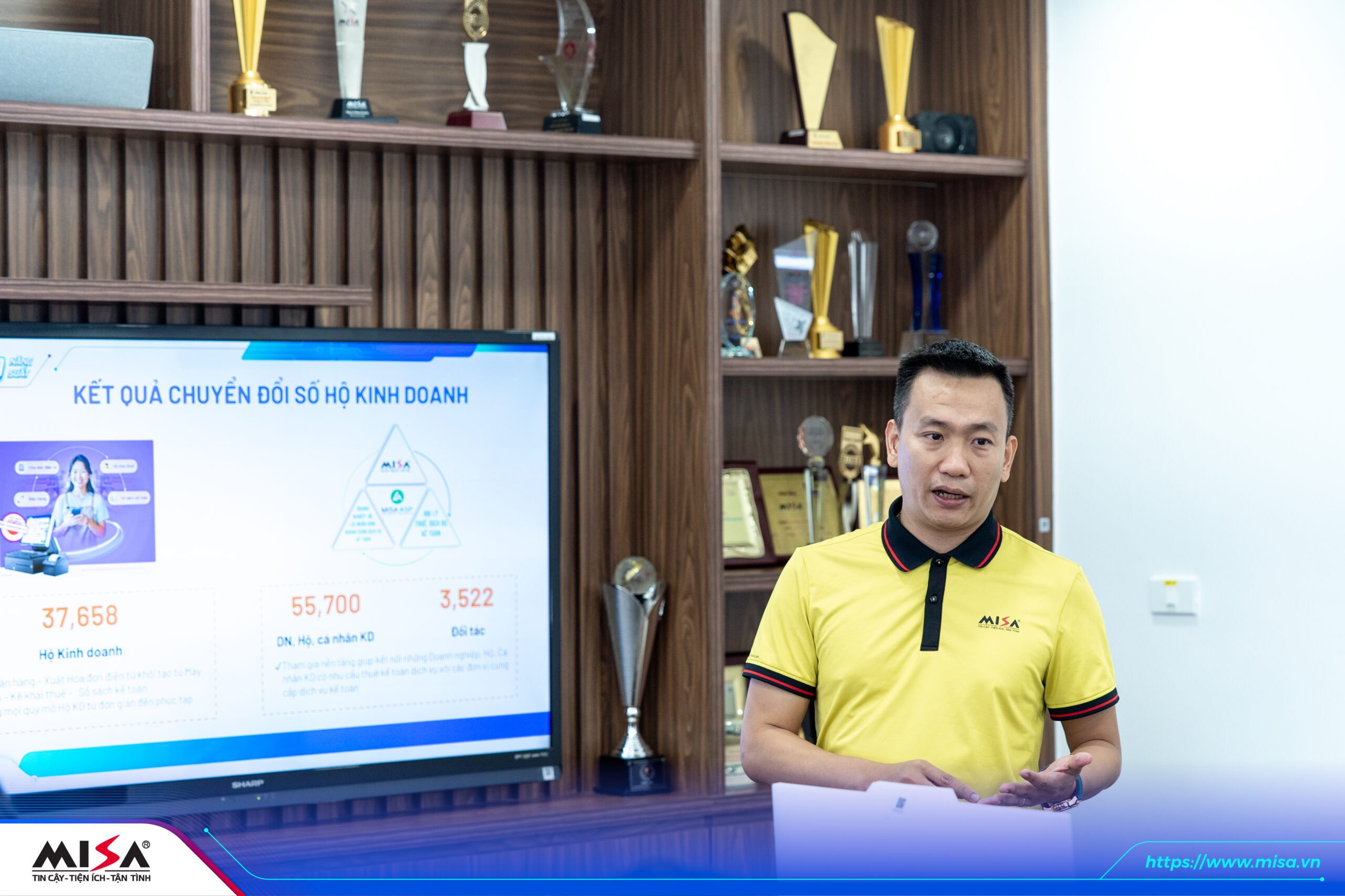 ក្នុងក្របខ័ណ្ឌនៃកម្មវិធី តំណាង MISA - លោក Nguyen Phi Nghi នាយកផ្នែកសហគ្រាសបានណែនាំប្រព័ន្ធអេកូឡូស៊ីផលិតផល បច្ចេកវិទ្យាឌីជីថល របស់ MISA ជាមួយនឹងតួលេខគួរឱ្យចាប់អារម្មណ៍អំពីចំនួនអតិថិជន និងអត្រាកំណើន។ ជាពិសេស តាមរយៈការចែករំលែក MISA បានបង្ហាញយ៉ាងច្បាស់នូវសមត្ថភាព និងទំនួលខុសត្រូវឈានមុខរបស់ខ្លួនក្នុងការរួមដំណើរជាមួយគ្រួសារធុរកិច្ច និងសហគ្រាសស្របតាមដំណោះស្រាយ 68-NQ/TW ។