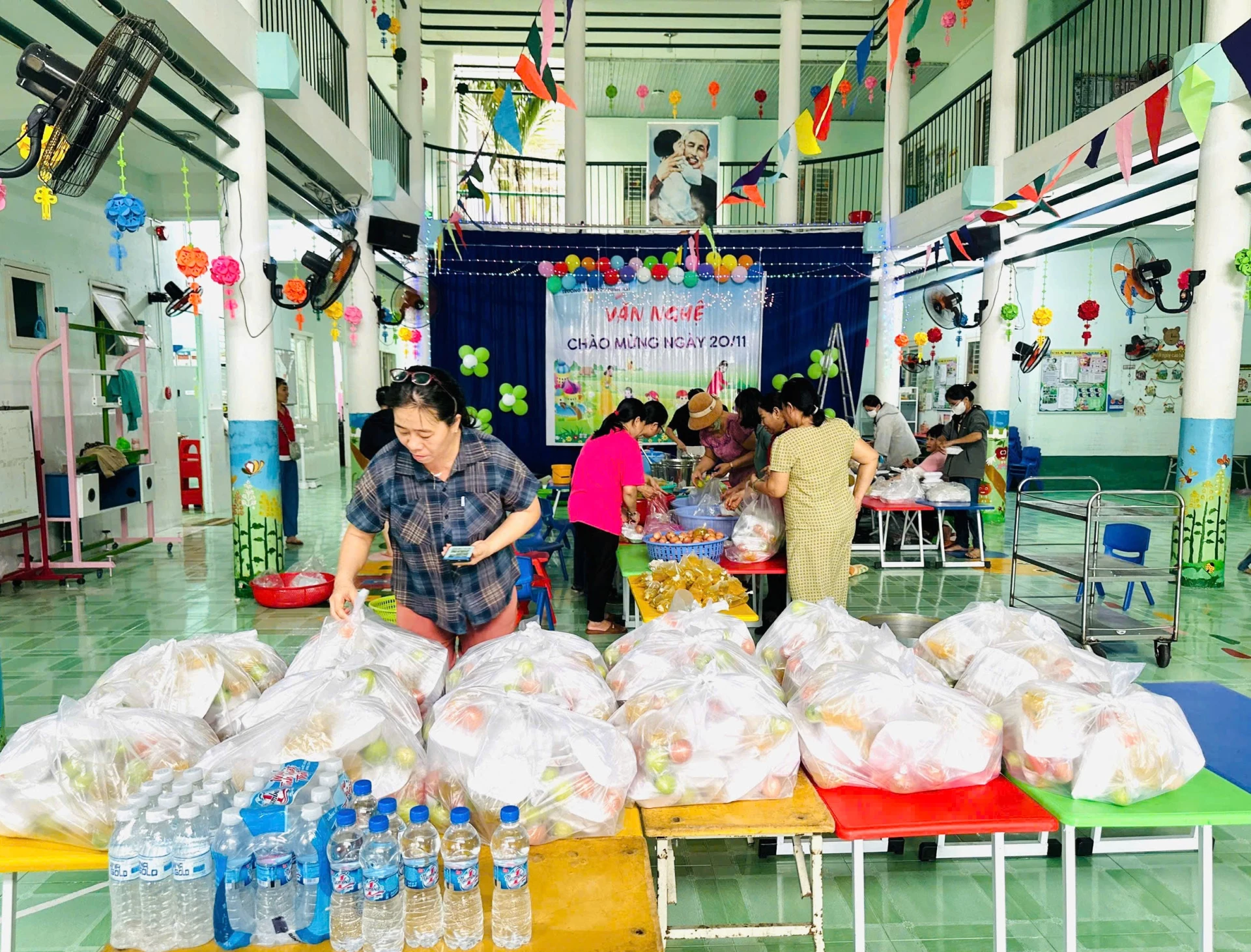 | រៀបចំអាហារដោយឥតគិតថ្លៃនៅសាលាមត្តេយ្យ Ninh Hai (វួដ Ninh Chu)។ |