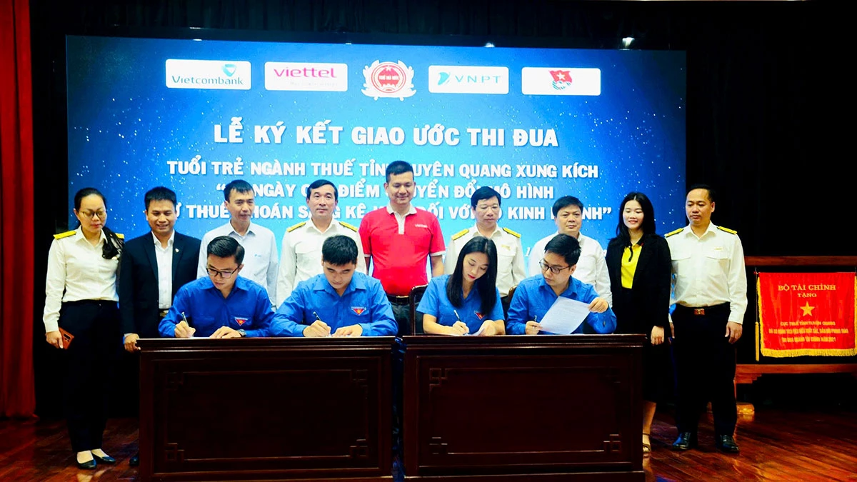 សហភាពយុវជននៃអង្គភាពពន្ធខេត្ត Viettel, Vinaphone និង Vietcombank បានចុះហត្ថលេខាលើការប្តេជ្ញាចិត្តដើម្បីប្រកួតប្រជែង និងចុះឈ្មោះសម្រាប់ភារកិច្ចជាក់លាក់។