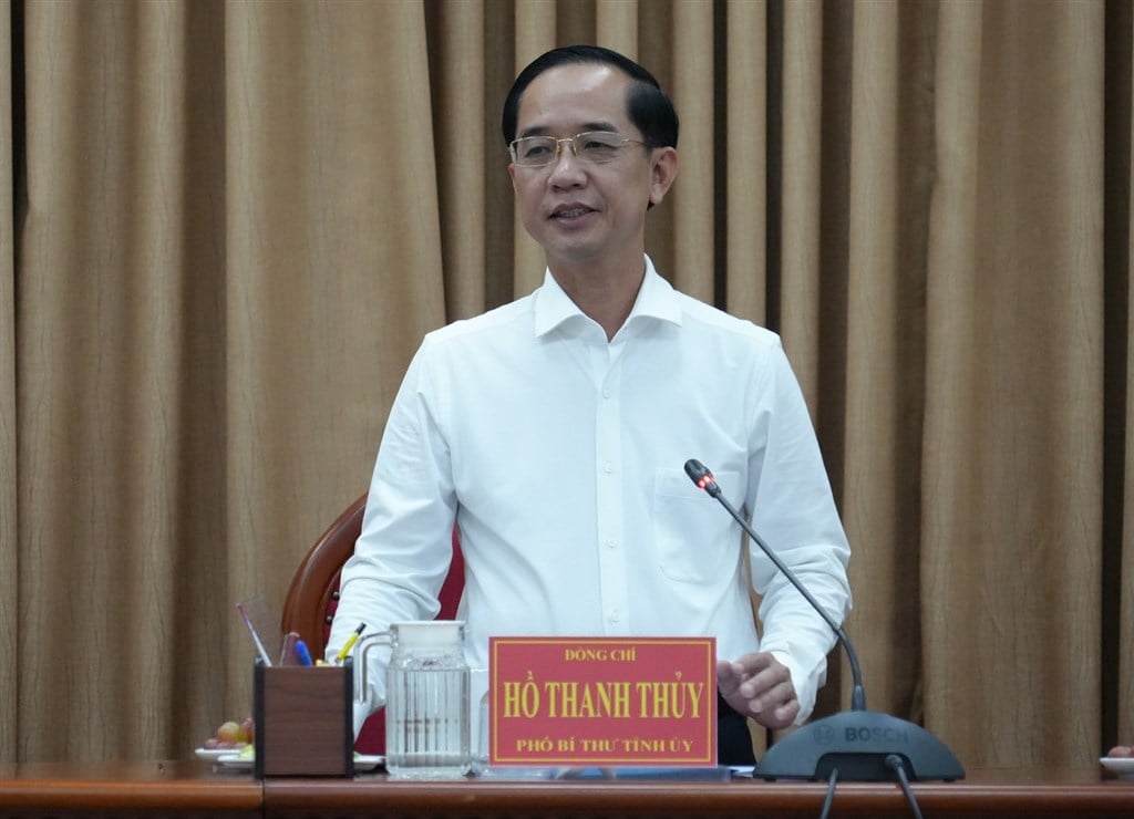 អនុលេខាគណៈកម្មាធិការបក្សខេត្ត លោក Ho Thanh Thuy ថ្លែងក្នុងកិច្ចប្រជុំ។