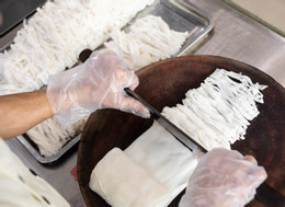 ម្សៅត្រូវកិនជាមួយនឹងបាយអថ្ម រួចយកទៅចំហុយក្នុងឡចំហាយ។ បន្ទាប់ពីចំហុយនំខេកត្រូវបានទុកចោលឱ្យស្ងួតប្រហែល 5 នាទីដើម្បីធានាភាពបត់បែនរបស់វា។ ហាងក៏បានកាត់នំតាមសំណូមពររបស់អតិថិជន រួចយកទៅស្ងោរក្នុងទឹកដាំពុះដើម្បីឱ្យវាទន់” លោក Truong ណែនាំ។